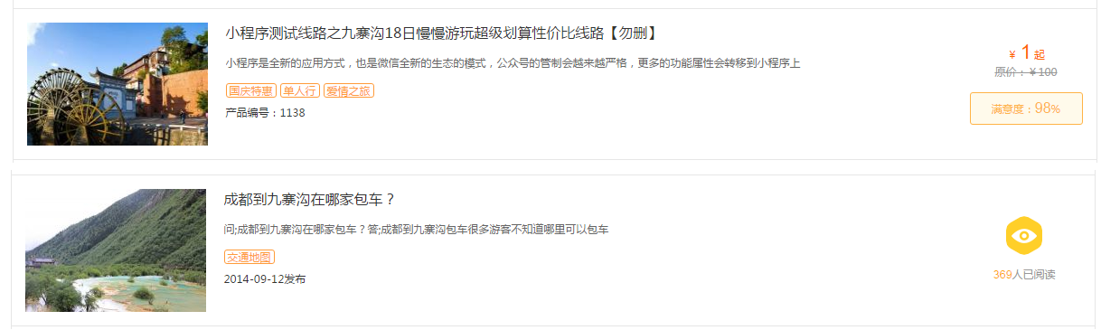 ● 作為一個旅游電商網站,在搜索結果頁面卻看不到產品的關鍵信息。
