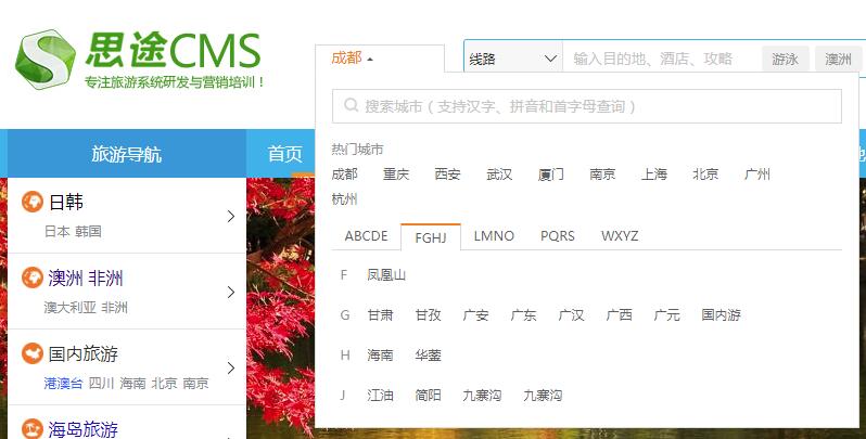 對于已經開通了目的地子站的網站,城市站點還有更深的搜索引擎優化意義。用戶點擊目的地時將會直接跳轉到相關目的地子站,如用戶選擇成都,將會跳轉到以chengdu.situcms.com為地址的二級域名。