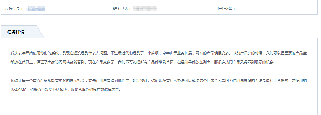 我們把思途CMS的模塊功能介紹給了這位提工單的用戶,并且提醒他,除了首頁,現在你可以在網站的各個頁面都添加自己想要推薦的產品。比起固定顯示某一個產品和隨機調用不同產品,使用模塊功能展示的產品更有針對性,用戶更加精準,是真真正正用戶想要了解和瀏覽的產品。