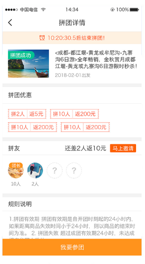 而團(tuán)購的本質(zhì),是營銷手段。社交拼團(tuán)就是低成本吸粉引流的典型模式。如果能夠讓我們的用戶邀請(qǐng)好友組團(tuán)出游,實(shí)現(xiàn)用戶增長,則不再是難題。