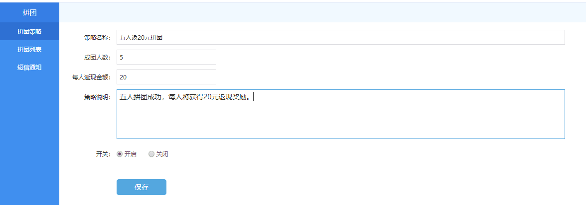 現(xiàn)在,要建立這樣一個(gè)理想的拼團(tuán)購流程,只需在安裝應(yīng)用后,通過思途后臺(tái)進(jìn)行相應(yīng)的操作就可以完成了。沒有任何規(guī)則的限制,所有的返現(xiàn)政策和規(guī)則均由平臺(tái)根據(jù)自身運(yùn)營情況來設(shè)置,和平臺(tái)的優(yōu)惠政策也沒有沖突。哪些產(chǎn)品可以拼團(tuán),返現(xiàn)根據(jù)人數(shù)怎么規(guī)定,一切,都由我們商家說了算。