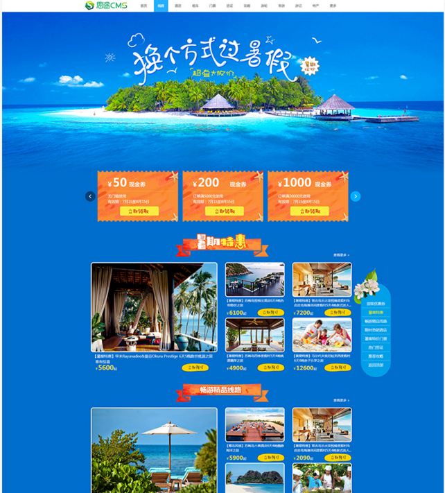 上面講到的這幾點關于旅游網站模板設計的幾個注意事項,是不是覺得聽起來道理都很簡單呢,但是落到自己身上卻不知道該怎么做,沒關系,你可以使用思途提供的旅游網站模板,幫你解決以上問題,不僅針對視覺感受和搜索引擎優化等方面設計創作,還支持個性化模板定制,滿足差異化需求。