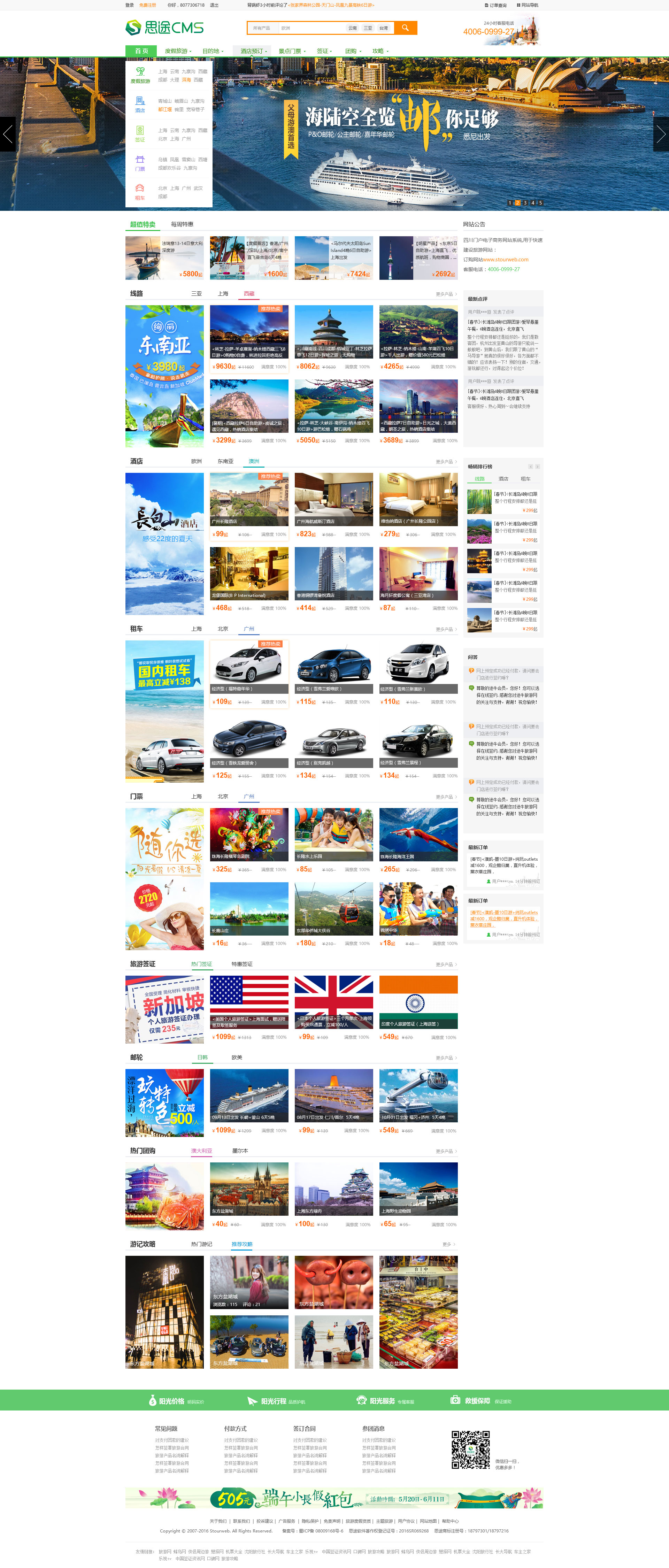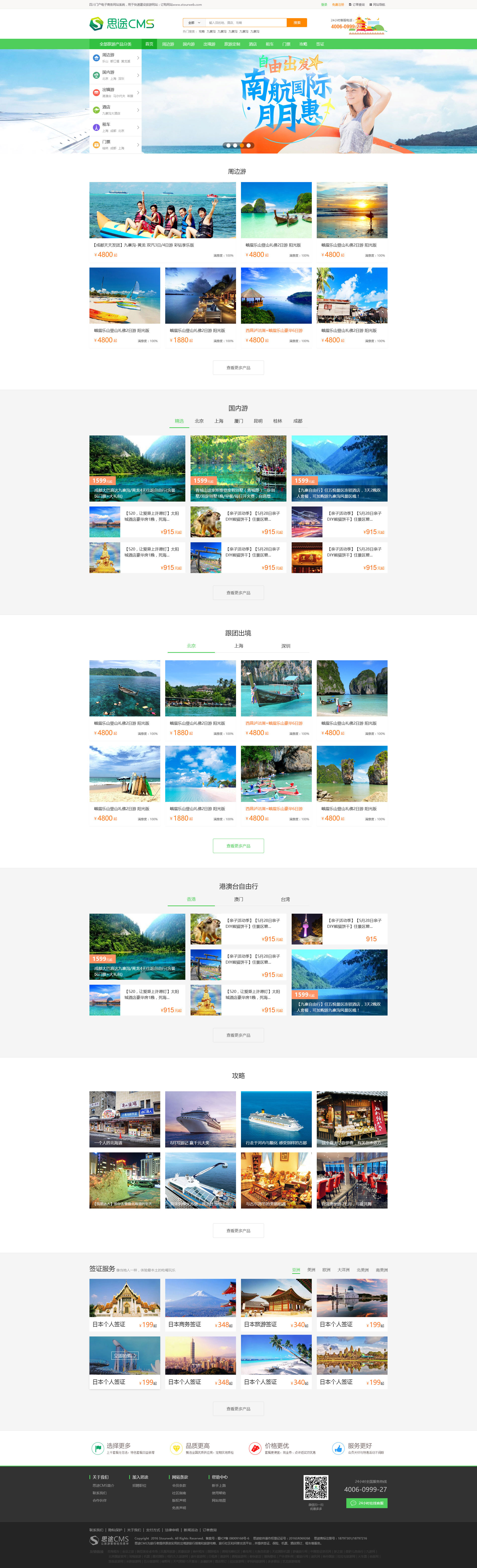 此套經典門戶首頁模板適合綜合門戶型旅游網站首頁建設需求,何為經典?經久不衰是為經典。本套旅游網站模板的設計沿襲了傳統旅游網站模板的風格,是主流價值的代表。頁面整體使用簡潔,統一的排版設計風格,業務分類清晰,產品一目了然。線路,酒店,門票,租車,團購,簽證,攻略,滿足各種旅游出行需求,經典會被銘記,而經典的旅游網站模板才會被用戶喜愛和購買。此經典門戶首頁模板,功能齊全,設置簡單,可輕松應用于綜合門戶型旅游網站首頁。