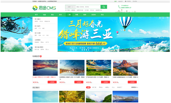 從今年的國慶起,全國多地景點門票下調,此舉必定會對景區營收帶來一定的影響。不過門票改革可不只是降價這簡單的一點。既然智慧旅游時代,景區智慧化的第一步,必然是將門票業務轉移到線上,那么不管是景區、門票代理商還是旅行社,我們都必須重視電子門票的業務。它既為我們節省了大量的人力成本,提高了售票效率;又為我們拓寬了銷售渠道,觸及到了更廣大的游客群體,可以說是益處多多。不過,如果我們將電子門票作為主營業務,那么在自己的旅游電商平臺布局時,就需要更加的慎重仔細了。怎么辦呢?最簡單的辦法,當然是選擇一套適合的門票首頁模板了。