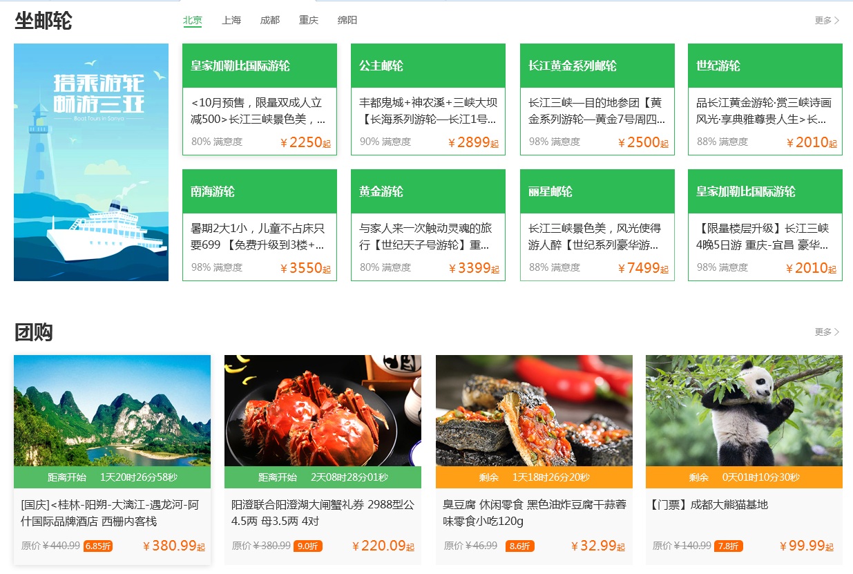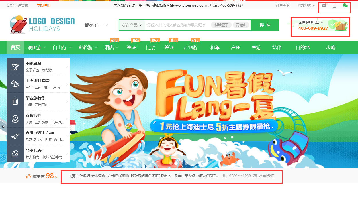 而多產(chǎn)品類型的旅游網(wǎng)站(中大型旅游網(wǎng)站、綜合門戶旅游網(wǎng)站等),通常需要展示豐富的產(chǎn)品種類,這就需要功能更全面的網(wǎng)站首頁了。本次思途精心打造的綜合版門戶首頁模板,分類多樣,層次清晰,還增添了更為飽滿的旅游場景圖和攻略點評,有利于全面地向游客傳遞我們的產(chǎn)品信息。