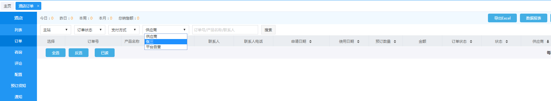 1.支持酒店訂單按供應商篩選
