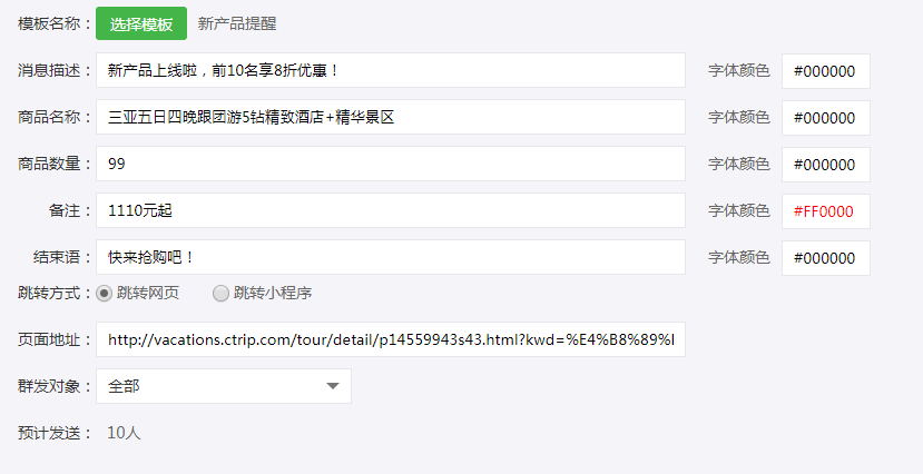 比如,平臺上架了新的線路產品后,我們就可以選擇目標用戶群體,向他們推送一則新產品上線通知,第一時間觸達用戶。