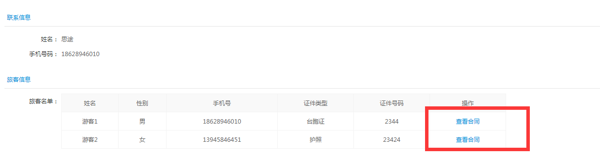 由于旅游的結伴特性,通常我們的一個訂單中都會包含多個游客,因此需要與每位游客簽訂電子合同。那么,為了保障大家經營的合法性,規避風險問題,升級之后系統將針對訂單中的游客每人生成一份在線合同,游客和我們的管理人員也可以查看具體的合同詳情。