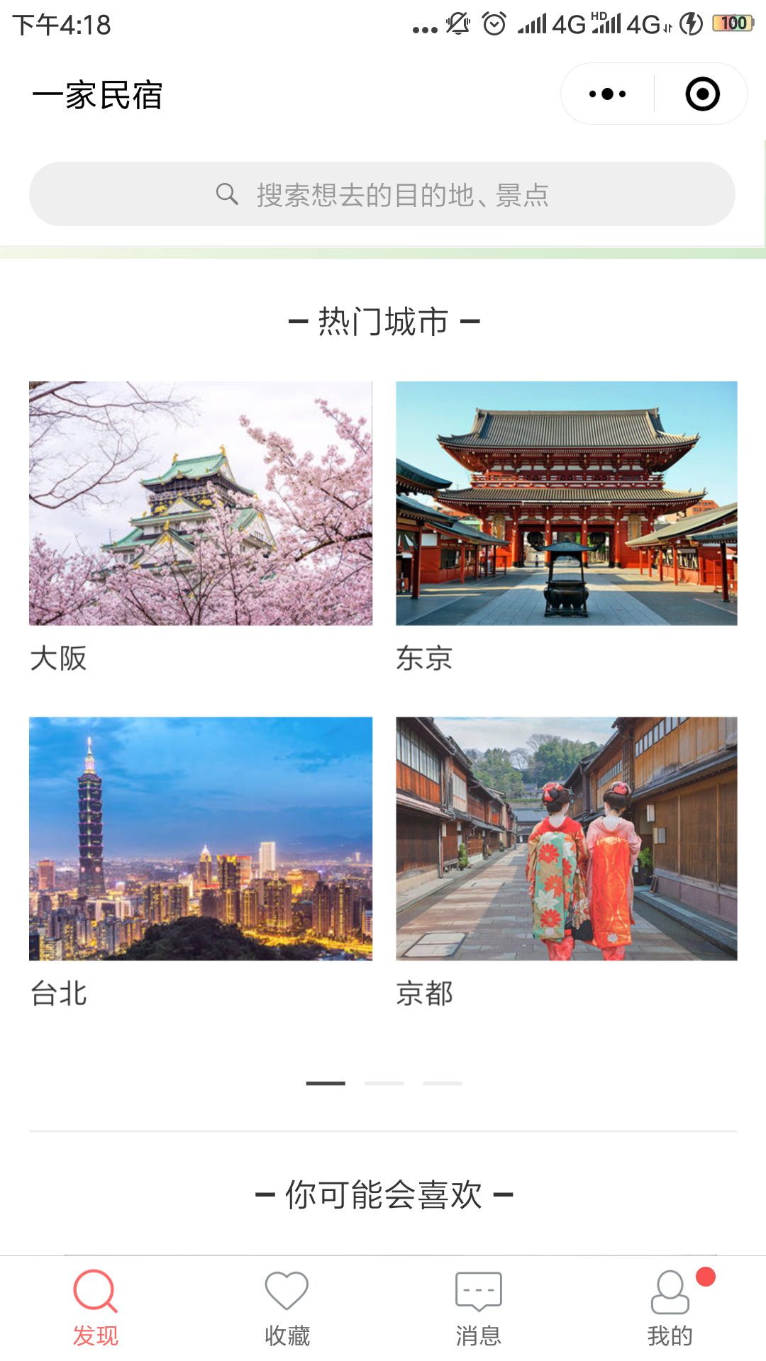 一家民宿+:該程序是全球華人民宿信息平臺,它不但專注于海外華人民宿,而且國內(nèi)的城市也所涉及。同時它還可以通過旅游目的地或者景區(qū)查找附近民宿,民宿的質(zhì)量偏高且對房子的描述清晰明了。