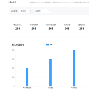營業(yè)中收入 產(chǎn)品銷售額 掃碼收款總額 支付總額 提現(xiàn)支出 收入來源分布