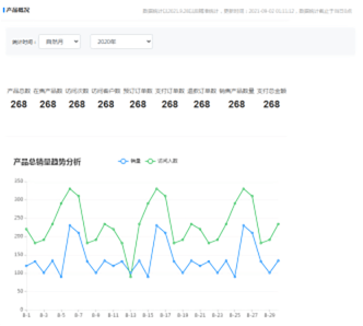 產(chǎn)品總數(shù) 在售產(chǎn)品 訪問次數(shù) 訪問客戶 預訂訂單數(shù) 支付訂單 退款訂單 銷售產(chǎn)品 支付總金額 總銷售趨勢