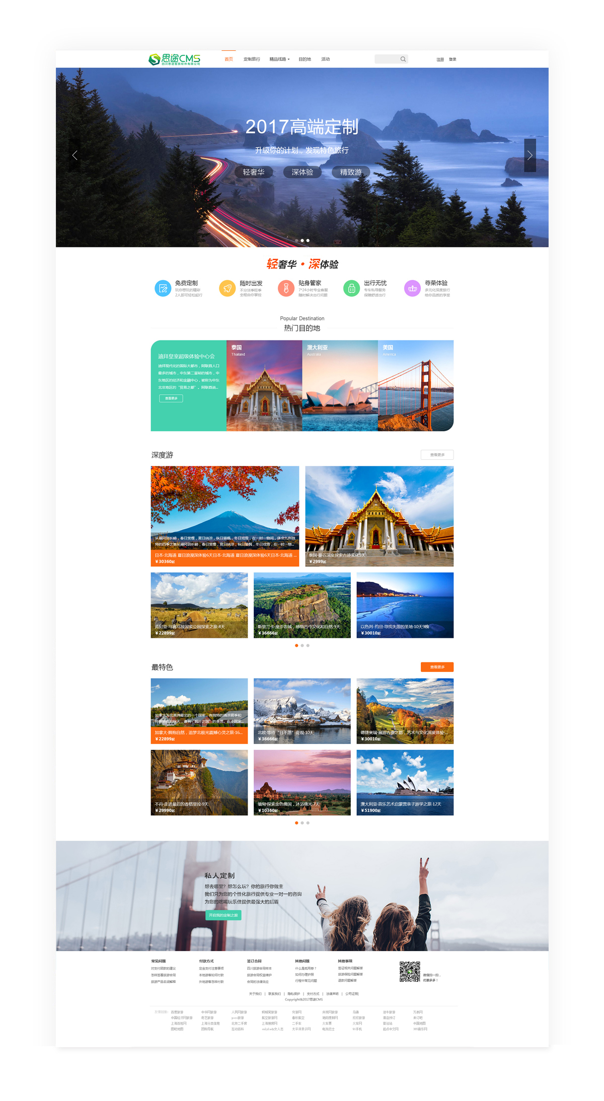(網站首頁)本套模板為深度定制游首頁模板,專為定位于小眾旅游網站、高端旅游網站和深度定制游網站特別設計。模板整體風格非常能夠體現旅游產品的差異化和定制化。讓游客第一眼即能感受到網站深度、定制的產品特點。